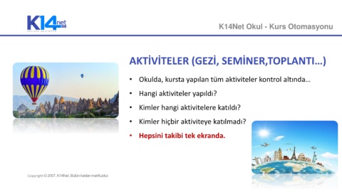 • Okulda, kursta yapılan tüm aktiviteler kontrol altında…
